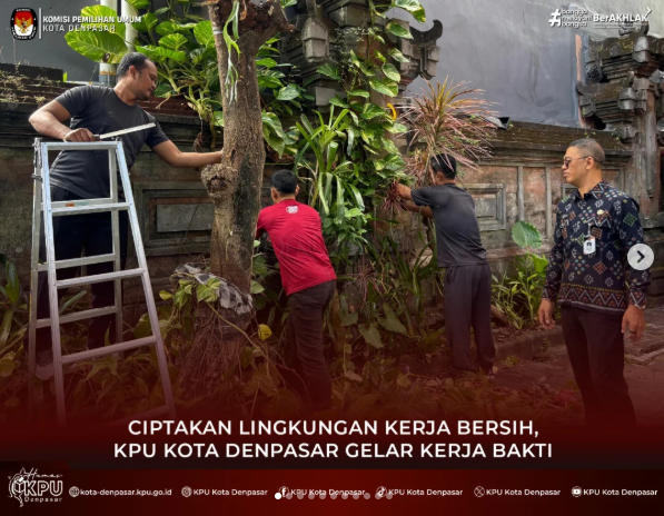 #temanpemilih & #wargakotadenpasar Komisi Pemilihan Umum (KPU) Kota Denpasar melaksanakan program Jumat bersih/kerja bakti di halaman Kantor KPU Kota Denpasar. Jumat (1/8/2025). Kerja bakti dilaksanakan oleh jajaran Sekretariat KPU Kota Denpasar, dan koordinir oleh Sekretaris KPU Kota Denpasar. Tujuan kegiatan kerja bakti tersebut adalah untuk menjaga kebersihan dan keindahan lingkungan kantor KPU Kota Denpasar, menciptakan suasana kerja yang nyaman dan sehat, serta mempererat tali persaudaraan antar Sekretariat KPU Kota Denpasar. (SM/Humas/KPU-DPS). "Ngulati Denpasar Shanti"....