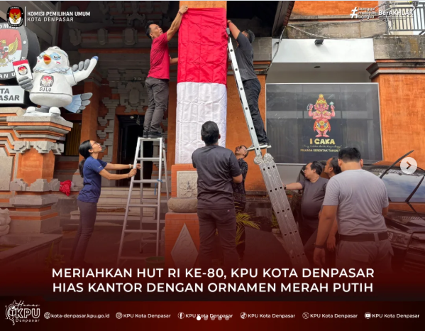 Meriahkan HUT RI ke-80, KPU Kota Denpasar Hias Kantor dengan Ornamen Merah Putih