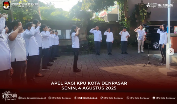 #temanpemilih & #wargakotadenpasar Komisi Pemilihan Umum (KPU) Kota Denpasar melaksanakan Apel Pagi di halaman Kantor KPU Kota Denpasar. Senin (4/8/2025). Bertindak sebagai pembina apel pagi adalah Ketua Divisi Teknis Penyelenggaraan KPU Kota Denpasar, Megawati Purnama Sari Wijaya. Apel pagi diikuti oleh Ketua KPU Kota Denpasar, Ketua Divisi Perencanaan, Data dan Informasi KPU Kota Denpasar, Ketua Divisi Hukum dan Pengawasan KPU Kota Denpasar, Sekretaris dan seluruh Jajaran Sekretariat KPU Kota Denpasar, serta Mahasiswa yang melaksanakan Praktek Kerja Lapangan (PKL) di KPU Kota Denpasar. Sebagai pembina apel, Megawati memberikan arahan, terkait kegiatan yang akan dilaksanakan oleh KPU Kota Denpasar. Dari Divisi Hukum akan melaksanakan rapat evaluasi SPIP, Divisi Perencanaan, Data dan Informasi masih berproses terkait pemutakhiran data pemilih berkelanjutan, untuk divisi sosialisasi nantinya akan menunggu jadwal dari sekolah untuk KPU Kota Denpasar melaksanakan sosialisasi pemilih pemula melalui "KPU Goes To School". Sebelum apel pagi dibubarkan, seluruh jajaran KPU Kota Denpasar yang mengikuti apel pagi melaksanakan doa bersama. Tujuannya agar segala aktivitas/pekerjaan yang dilakukan oleh sekretariat KPU Kota Denpasar berjalan lancar. Pelaksanaan apel pagi bertujuan untuk mendengar arahan pimpinan, meningkatkan disiplin dan tanggung jawab kerja, memupuk rasa kebersamaan dan kekeluargaan di lingkungan kerja KPU Kota Denpasar, membantu kelancaran pelaksanaan tugas dan fungsi, memberikan pembinaan dan pengawasan, menyampaikan informasi pelaksanaan program dan kegiatan yang akan dilaksanakan. (SM/Humas/KPU-DPS). "Ngulati Denpasar Shanti" ....