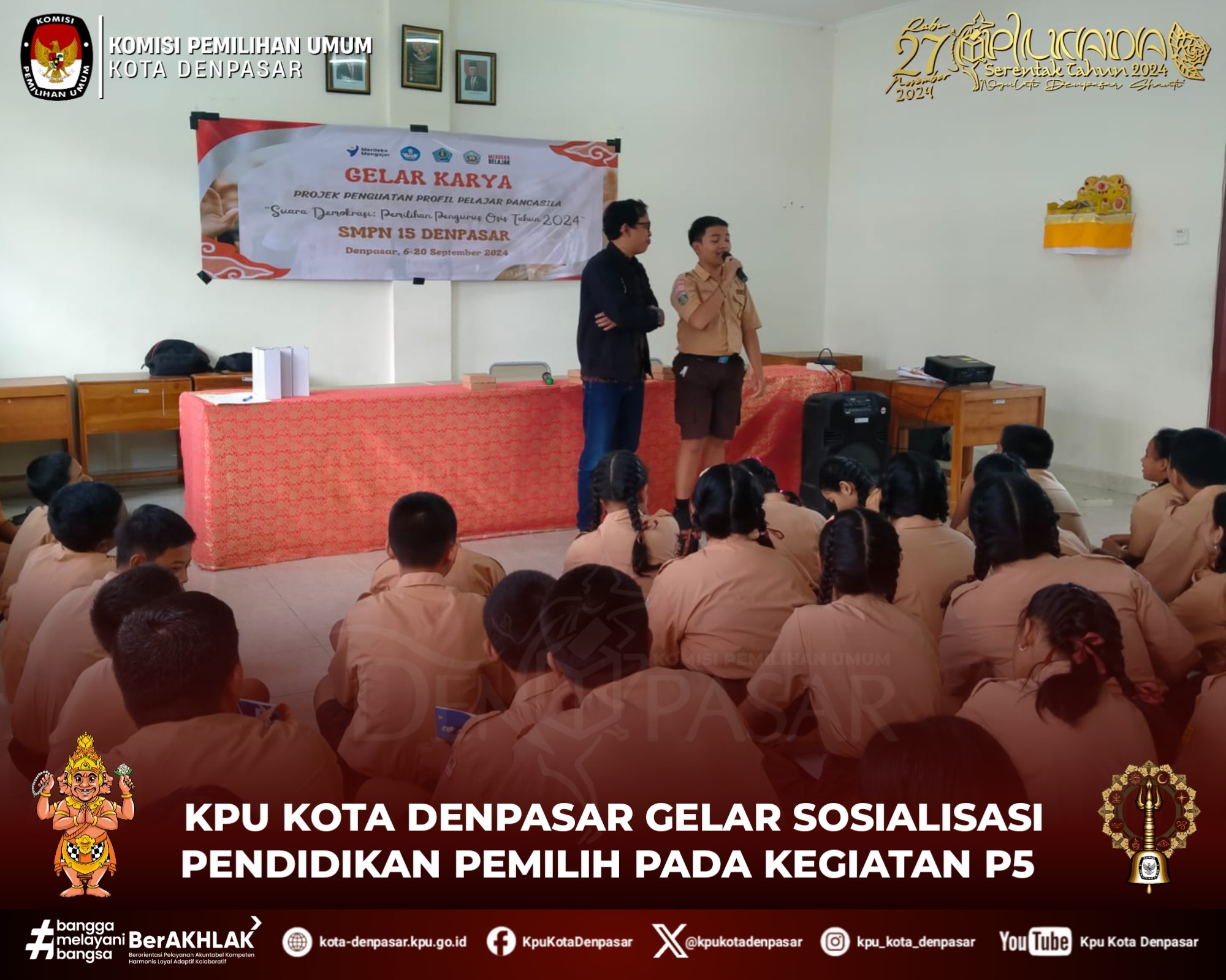Kegiatan sosialisasi pemilih muda tersebut diikuti oleh 79 orang siswa SMK Negeri 2 Denpasar. Bertindak sebagai narasumber dalam sosialisasi tersebut adalah Ketua Divisi Sosialisasi, Pendidikan Pemilih, Partisipasi Masyarakat dan Sumber Daya Manusia KPU Kota Denpasar, serta Ketua dan Anggota Bawaslu Kota Denpasar.