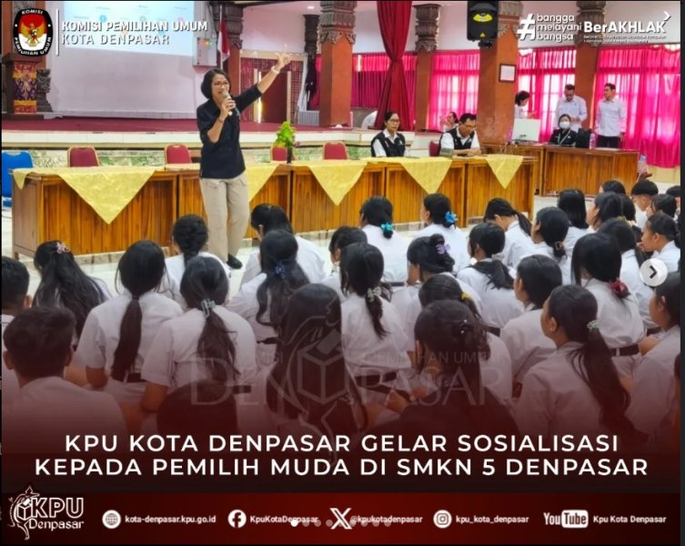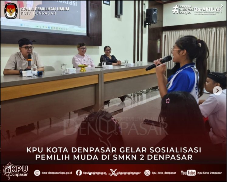 Komisi Pemilihan Umum (KPU) Kota Denpasar melaksanakan sosialisasi kepada pemilih muda di SMK Negeri 2 Denpasar. Kamis (19/6/2025).