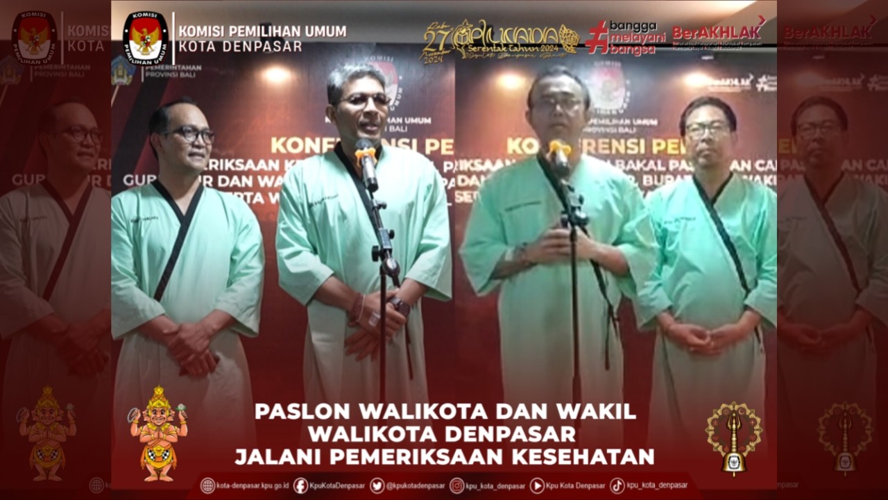 #temanpemilih & #wargakotadenpasar Pasangan Calon (Paslon) Walikota dan Wakil Walikota Denpasar, I Gusti Ngurah Jaya Negara - I Kadek Agus Arya Wibawa (Jaya-Wibawa) dan Gede Ngurah Ambara Putra - I Nengah Yasa Adi Susanto (Ambara-Adi/ABDI) telah melaksanakan pemeriksaan kesehatan yang dilaksanakan di Rumah Sakit Umum Bali Mandara. Pemeriksaan kesehatan dilaksanakan selama dua hari, yaitu hari Sabtu, 31 Agustus 2024 dan Minggu 1 September 2024. Di hari pertama dilaksanakan pemeriksaan kesehatan berupa pemeriksaan darah, pemeriksaan radiologi, setelah itu pemeriksaan dibeberapa poli, yaitu pemeriksaan di poli jantung, gigi dan mulut, telinga, hidung, dan tenggorokan (THT), mata, dan hampir seluruh organ tubuh paslon diperiksa. Selanjutnya di hari kedua para Paslon melakukan wawancara psikotes. Usai pemeriksaan kesehatan, para Paslon melakukan konferensi pers. Dalam konferensi pers tersebut paslon Jaya-Wibawa menyebut telah memenuhi semua tahapan pemeriksaan yang sudah ditetapkan. "Kami sangat lancar melakukan pemeriksaan, mudah-mudahan ini menjadi titik awal kita untuk mengikuti tahapan-tahapan berikutnya dalam Pemilihan Walikota dan Wakil Walikota Denpasar tahun 2024," ujar Jaya Negara. Hal senada juga disampaikan Paslon Ambra-Adi, dalam pemeriksaan kesehatan berjalan sangat lancar, dengan tim medis yang profesional mendampingi hingga akhir tes. “Astungkara kami dalam keadaan sehat jasmani dan rohani. Astungkara bisa lolos dan bisa mengikuti tahap berikutnya. Kami menjaga pola makan yang sehat. Hal yang dipersiapkan tidak ada yang khusus. Hanya olahraga dan mengatur pola makan saja,” ucap Ambara Putra.(SM/Humas/KPU-DPS). "Ngulati Denpasar Shanti"