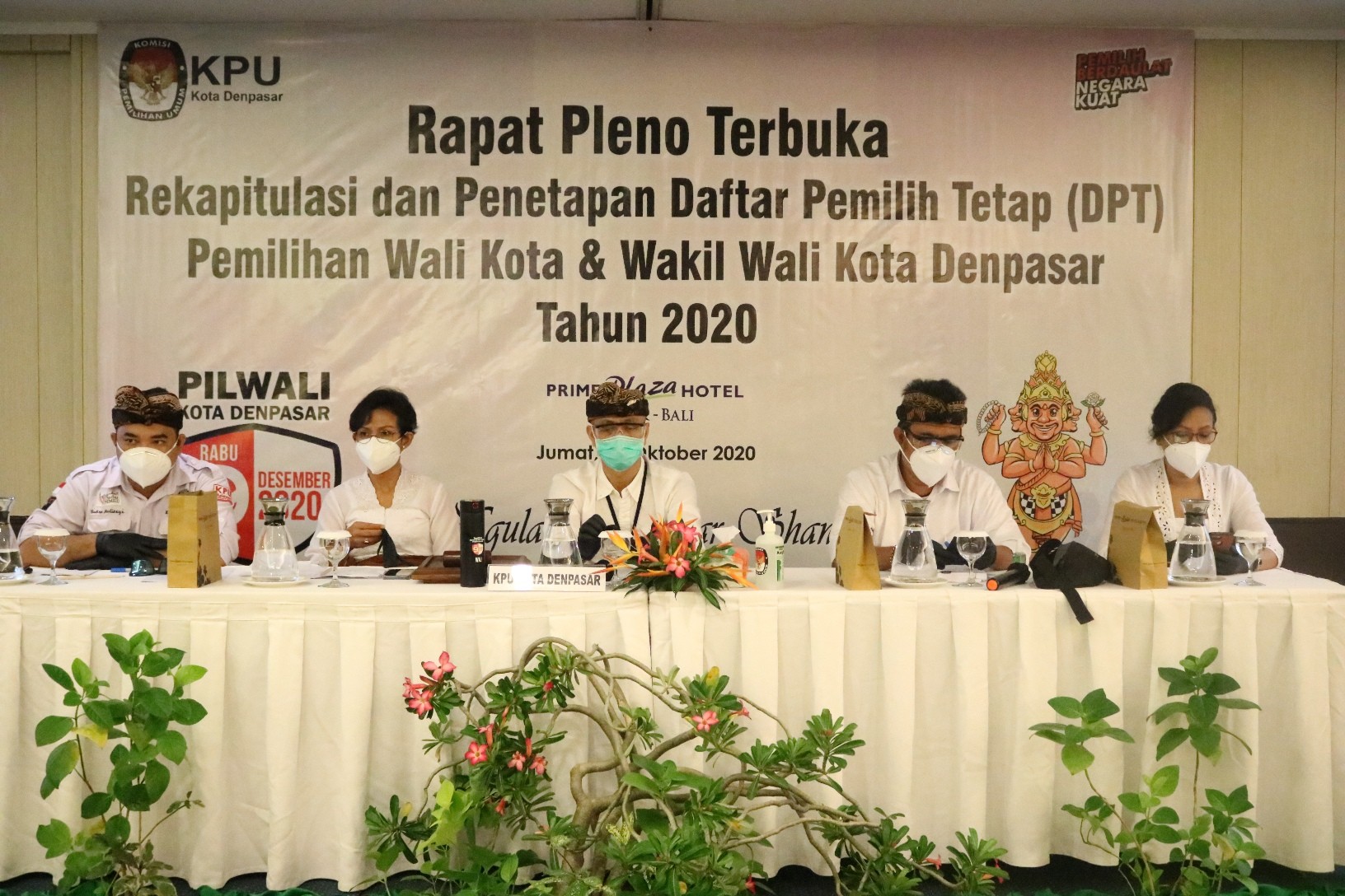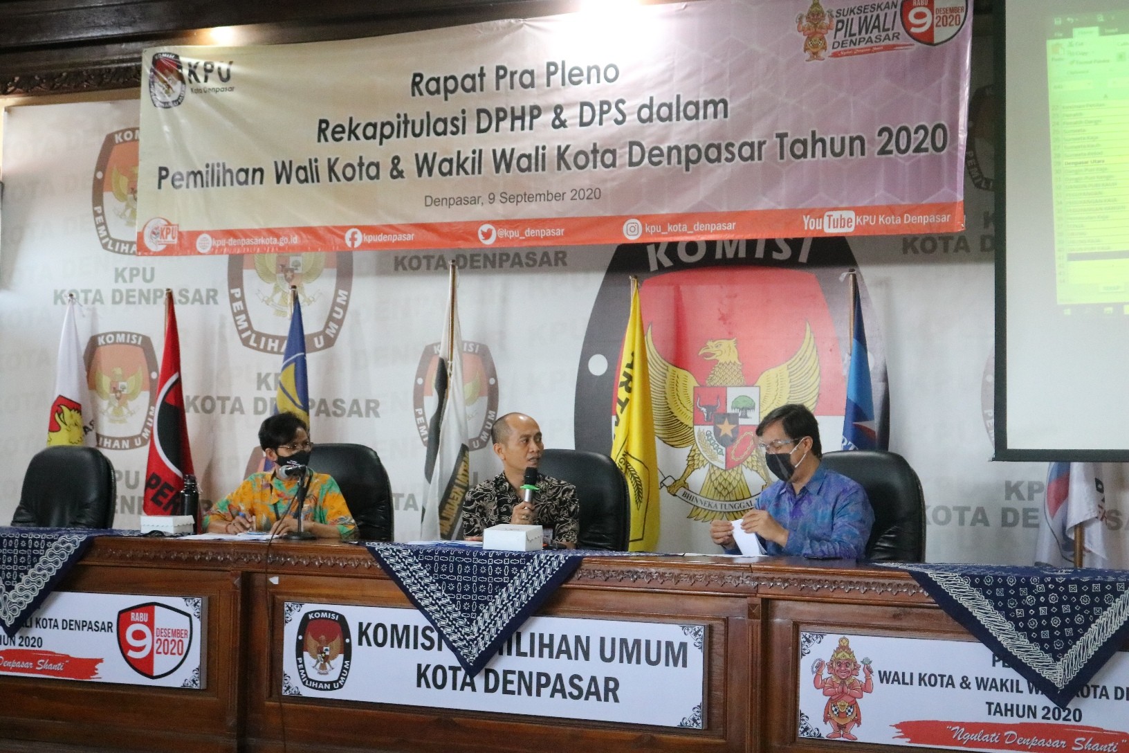 Denpasar, kpu-denpasarkota.go.id- KPU Kota Denpasar telah menetapkan Daftar Pemilih Sementara (DPS) Pemilihan Wali Kota dan Wakil Wali Kota Denpasar Tahun 2020. Kamis (10/9/2020). Bertempat di aula KPU Kota Denpasar, rapat pleno terbuka penetapan DPS Pilwali Denpasar tahun 2020 dihadiri oleh Bawaslu Kota Denpasar, Ketua PPK se-Kota Denpasar, perwakilan dari KPU Provinsi Bali, Disdukcapil Kota Denpasar, Kapolresta Denpasar, Dandim 1611 Badung, Wali Kota Denpasar, Kejaksaan Negeri Denpasar, LO Bakal Pasangan Calon, serta perwakilan dari Partai Politik. Rapat pleno yang berlangsung dengan protokol kesehatan dibuka oleh Ketua KPU Kota Denpasar I Wayan Arsa Jaya. Dan selanjutnya masing-masing Ketua PPK membackan rekapitulasi DPS di msing- masing kecamatan. Dengan rincian, Denpasar Selatan 120.541 pemilih, Denpasar Timur 81.011 pemilih, Denpasar Barat 129.131 pemilih, Denpasar Utara 114.510 pemilih. Maka DPS dalam pemilihan Wali Kota dan Wakil Wali Kota Denpasar tahun 2020 adalah 445.193 pemilih. Yang terdiri dari 219.628 pemilih laki-laki dan 225.565 pemilih perempuan. (SM/Hupmas/KPU-DPS).