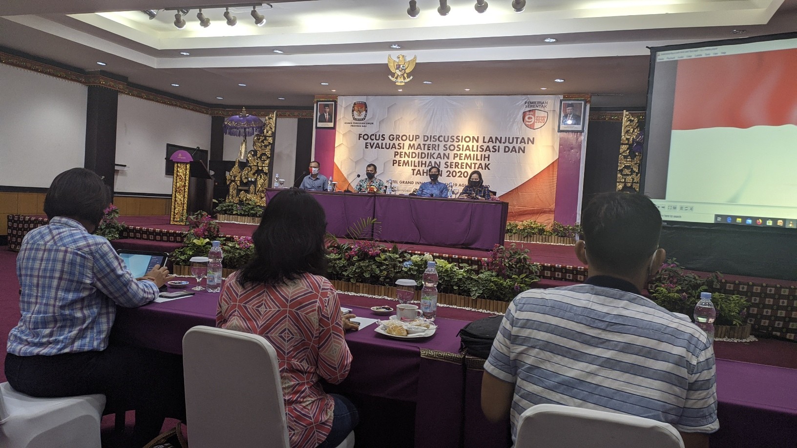 FGD dibuka oleh Komisioner KPU Provinsi Bali Divisi Perencanaan, Data dan Informasi I Gusti Ngurah Agus Dharmasanjaya, yang pada kesempatan tersebut mewakili Ketua KPU Provinsi Bali. Dalam sambutannya, Ketua KPU Provinsi Bali berharap setelah diadakannya FGD ini, target partisipasi pemilih dalam Pilkada Serentak tahun 2020 terpenuhi, yaitu 85% partisipasi pemilih.