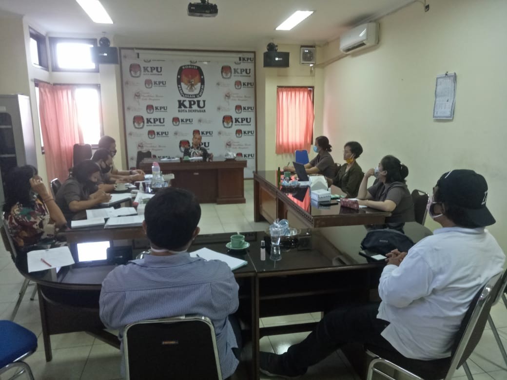 Denpasar, kpu-denpasarkota.go.id-Kelompok Kerja (Pokja) Kehumasan, Media Center dan Pelayanan Informasi Pilwali Tahun 2020 mengadakan rapat pada hari Rabu (24/06/20) Pukul 10.48 wita bertempat di Ruang Rapat Lantai II KPU Kota Denpasar. Rapat dihadiri oleh Angggota Pokja Kehumasan dan dipimpin oleh Sibro Mulissyi selaku Ketua Pokja. Sibro menyampaikan bahwa tanggal 15 Juni 2020 yang lalu, KPU Kota Denpasar telah mengaktifkan kembali PPK dan PPS. Sibro pun mengapresiasi media yang tergabung dalam AJI (Aliansi Jurnalistik Indonesia) sudah mengunggah banyak kegiatan dalam tahapan Pilwali 2020 sampai saat ini. Selanjutnya Sibro memberitahukan bahwa KPU Kota Denpasar telah memulai tahapan pembentukan PPDP (Petugas Pemutakhiran Data Pemilih) tanggal 24 Juni 2020 sampai dengan tanggal 14 Juli 2020. Sebagaima Komisioner dan Sekretariat KPU Kota Denpasar yang telah mengikuti rapid test pada 12 Juni 2020 lalu, seluruh penyelenggara ad-hoc (PPK, PPS dan PPDP) juga akan di rapid test. “Dengan rapid test kita ingin masyarakat tahu kalau KPU Kota Denpasar dan jajarannya tidak bawa penyakit saat melakukan interaksi dengan masyarakat”jelas Sibro.