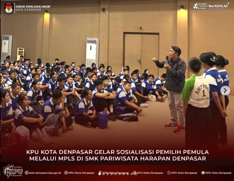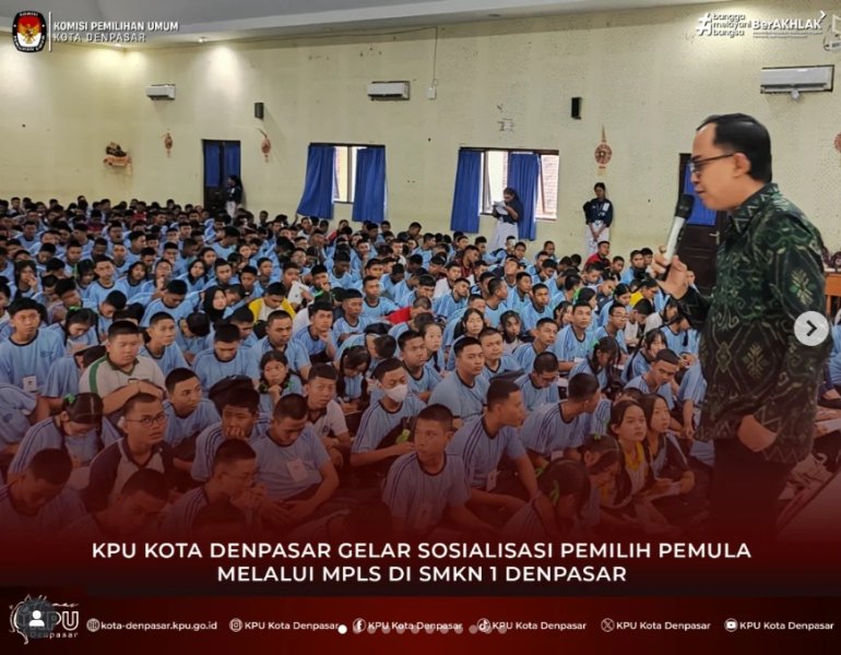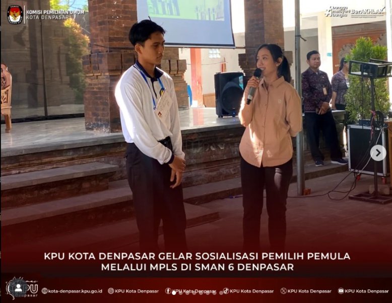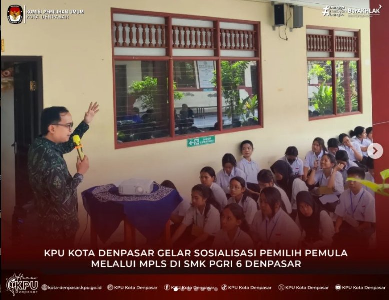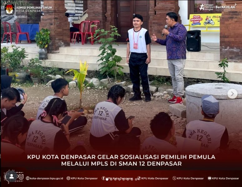 #temanpemilih & #wargakotadenpasar Komisi Pemilihan Umum (KPU) Kota Denpasar melaksanakan program KPU "Goes to School" di SMAN 12 Denpasar, Jalan Imam Bonjol No.603, Pemecutan Kelod, Denpasar. Rabu (23/7/2025). Kegiatan KPU "Goes to School" tersebut dilaksanakan dalam rangka sosialisasi pendidikan pemilih pemula melalui MPLS di SMAN 12 Denpasar. Diikuti oleh 118 orang siswa baru SMAN 12 Denpasar yang mengikuti kegiatan MPLS. Bertindak sebagai narasumber dalam sosialisasi pendidikan pemilih pemula melalui MPLS tersebut adalah Ketua Divisi Hukum dan Pengawasan KPU Kota Denpasar, I Made Windia. Sebelum penyampaian materi, Made Windia menyampaikan pertanyaan apa yang dimaksud dengan pemilu, Bastian dari kelomlok merah menjawab pemilihan diperlukan ketika masa jabatan presiden telah berakhir. Dalam sosialisasinya, Made Windia menjelaskan mengenai apa itu demokrasi, pentingnya demokrasi, pentingnya menggunakan hak pilih dalam pemilu dan pemilihan, serta bagaimana proses pemilu dan pemilihan di Indonesia, termasuk siapa saja penyelenggara pemilu di Indonesia. Minat siswa untuk mengikuti sosialisasi begitu antusias, antusiasme siswa ditandai dengan adanya beberapa pertanyaan yang disampaikan oleh peserta, antara lain, Praja dari kelompok kuning bertanya kenapa pemilu di indonesia belum secara elektronik e voting, narasumber menjawab dengan menggunakan sistem pemilu dengan mencoblos diyakini kecurangan sangat susah dilakukan dan pembuktiannya sangat jelas dan kuat. Belum seluruh wilayah dilakukan indonesia memadai sarana dan prasarananya menggunakan teknologi canggih. Kristi dari kelompok biru, mengapa tni polri tidak boleh memilih, dan apa sanksinya jika tni polri memilih, narasumber menjawab sesuai UU tni polri tidak dapat menggunakan hak pilihnya karena tni polri telah diberikan tugas oleh negara untuk menjaga ketertiban dan keamanan di wilayah NKRI selama pemilu. Kristian dari kelompok hijau bertanya apa peran kpu dalam memberikan pendidikan politik kepada masyarakat.