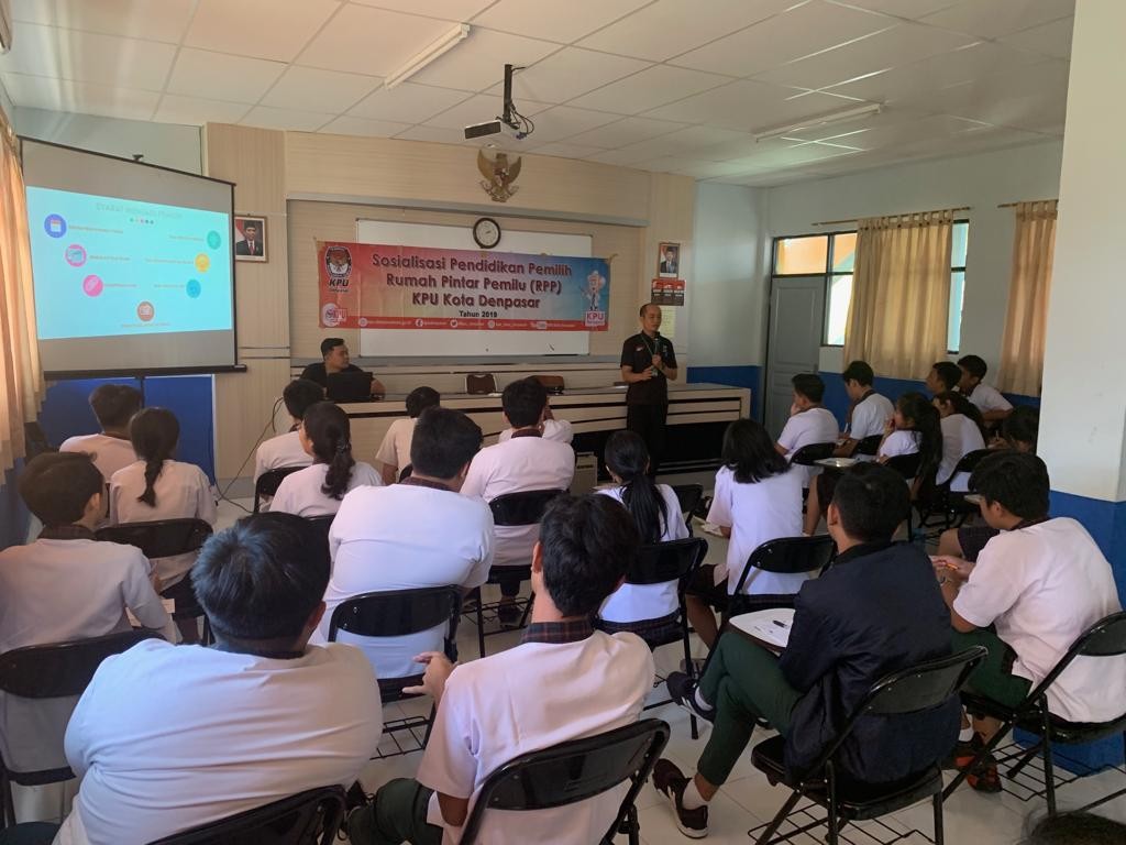 Denpasar, kpu-denpasarkota.go.id-Selasa (05/11/19), KPU Kota Denpasar mengundang siswa/siswi dari 10 SMA/SMK berkunjung ke Rumah Pintar Pemilu (RPP). Kunjungan tersebut dibagi dalam 2 sesi. Sesi pertama berlangsung dari pukul 10.00-12.00 wita sedangkan sesi kedua dari pukul 13.00-15.00 wita. SMA/SMK yang berkunjung ke RPP KPU Kota Denpasar pada sesi pertama antara lain SMA Muhammadiyah 1, SMA PGRI 2, SMK TP 45, SMK Teknologi Nasional, dan SMK Kertha Wisata. Pada sesi kedua, SMA/SMK yang berkunjung antara lain SMA Tunas Daud, SMA (SLUA) Saraswati 1, SMK Bali Dewata, SMK PGRI 2 dan SMK Penerbangan Cakra Nusantara.