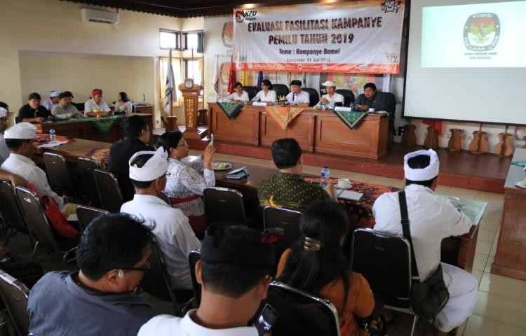 Pembukaan evaluasi disampaikan oleh Komisioner KPU Provinsi Bali, I Gusti Ngurah Darmasanjaya menghadiri acara untuk mewakili Ketua KPU Provinsi Bali. Dalam sambutannya, tujuan diadakannya Evaluasi Fasilitasi Kampanye Pemilu Tahun 2019 bertujuan untuk mendapatkan masukan untuk merumuskan format kampanye yang efektif terkait pelaksanaan kampanye dalam Pemilu 2019 mengingat di Denpasar akan menyelenggarakan Pilkada pada tahun 2020. Dalam pelaksanaan kampanye tersebut waktunya semakin panjang dan metode yang berpariatif, masing – masing daerah memiliki metode yang lain – lain, mengingat berbagai pertimbangan serta efektifitas kampanye, untuk itu sangat diperlukan masukan dari hadirin terkait teknis, waktu, dan anggaran karena jika kita cermati pada masa sebelumnya kampanye tidak difasilitasi, dan pada pemilu tahun 2019 untuk rasa keadilan kepada masing – masing peserta maka dibuat kebijakan untuk kampanye yang difasilitasi Negara. Dengan fasilitas ini diharapkan kampanye dapat dipantau dan lebih tertib. Disampaikan juga KPU saat ini melaksanakan pemutakhiran data pemilih berkelanjutan terhadap DPT Pemilu 2019 dan meminta masukan dari hadirin, khususnya dari partai politik.