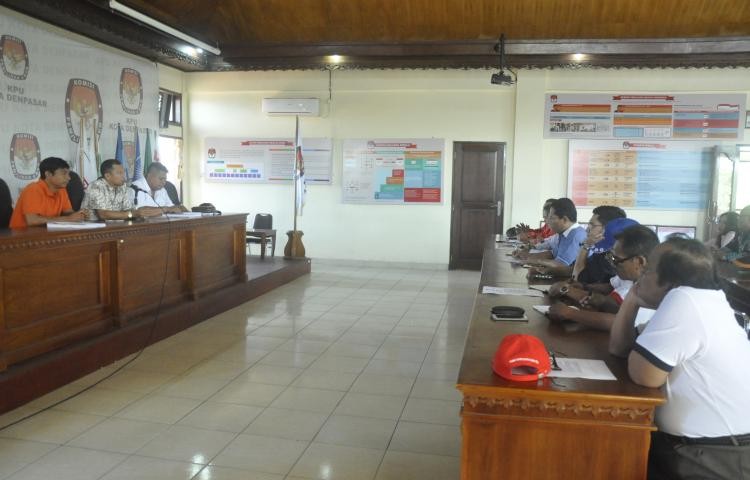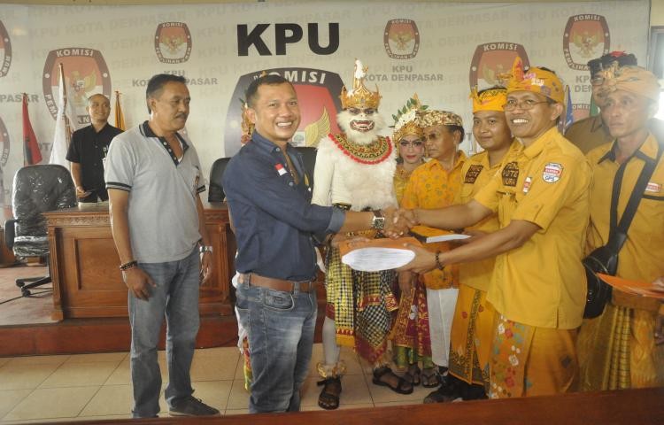 Denpasar, kpu-denpasarkota.go.id- Suasana KPU Kota Denpasar pada Minggu (15/10/17) terlihat berbeda. Sejak pukul 10.00 wita, KPU Kota Denpasar dipenuhi massa PKS dengan segala atributnya. PKS mendaftar pukul 10.05 wita, Alim Makhdi (Ketua PKS Kota Denpasar) menyerahkan Lampiran 2 Model F2 Parpol, Bukti Keanggotaan (KTA) serta Salinan KTP kepada Ketua KPU Kota Denpasar, I Gede John Darmawan. Tidak membutuhkan waktu lama, jumlah keanggotaan dalam berkas pendaftaran yang diajukan PKS dinyatakan sesuai dengan sipol yaitu 776. Pendaftaran PKS diterima KPU Kota Denpasar. John Darmawan mengapresiasi PKS atas konsistensinya mengikuti ketentuan KPU di setiap pemilu sehingga berkas yang diserahkan berkualitas. Diiringi bleganjur dan tarian, Partai Hanura memasuki KPU Kota Denpasar. Partai ini mendaftar pukul 10.18 wita selang beberapa menit setelah PKS. John Darmawan menerima berkas pendaftaran Partai Hanura di Aula KPU Kota Denpasar karena masih ada pengecekan berkas PKS di Ruang Penerimaan Pendaftaran. Partai Hanura mengajukan Lampiran 2 Model F2 Parpol, KTA serta KTP sebanyak 696 sesuai dengan yang terdapat dalam sipol. KPU Kota Denpasar pun menyatakan pendaftaran partai Hanura diterima. Sejam sebelum pendaftaran ditutup, yaitu pukul 15.00 wita Partai Gerindra mendaftar dengan membawa bleganjur seperti halnya Hanura. Ketua Gerindra DPC Denpasar, Made Mulyawan Arya menyerahkan berkas pendaftaran. Setelah dilakukan pengecekan oleh petugas pendaftaran jumlah keanggotaan yang diajukan dinyatakan sesuai dengan sipol yaitu 773. Gerindra pun menjadi partai ketiga yang pendaftarannya diterima KPU Kota Denpasar. Golkar sepertinya telah merancang untuk mendaftar di waktu yang “cantik”. Pukul 15.15 wita, partai ini menyerahkan berkas kepada Ketua KPU Kota Denpasar. Seperti halnya Hanura, penyerahan berkas pendaftaran Golkar juga berlangsung di Aula. Partai ini menyetor 1.098 keanggotaan dalam Lampiran 2 Model F2 Parpol, KTA dan Salinan KTP. Jumlah ini sama dengan sipol. Pendaftaran ini pun memberikan hasil yang cantik, diterima KPU Kota Denpasar. Sampai dengan hari ini di KPU Kota Denpasar sudah ada 8 parpol yang mendaftar dan seluruhnya diterima karena jumlah pada Daftar Nama dan Alamat Anggota (Lampiran 2 Model F2 Parpol), KTA serta Salinan KTP yang diserahkan sesuai dengan sipol.