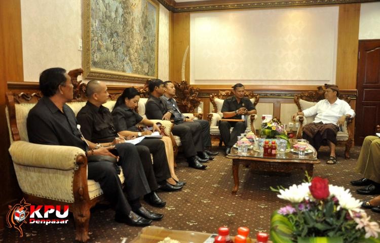 Denpasar, kpu-denpasarkota.go.id-Komisi Pemilihan Umum (KPU) Kota Denpasar mendatangi Kantor Walikota Denpasar untuk melakukan audiensi. Senin (18/9/2017). KPU Kota Denpasar yang diwakili oleh seluruh Komisioner KPU Kota Denpasar dan Sekretaris KPU Kota Denpasar disambut hangat oleh Walikota Denpasar I.B. Rai Dharma Wijaya Mantra beserta Kepala Badan Kesatuan Bangsa dan Politik Kota Denpasar, dan Kepada Bagian Kerjasama Pemerintah Daerah Kota Denpasar bertempat diruang tamu Walikota Denpasar. I Gede John Darmawan selaku Ketua KPU Kota Denpasar menjelaskan tujuan dari audiensi yang dilakukan KPU Kota Denpasar dengan Walikota Denpasar adalah untuk mengajukan rencana kerjasama atau MoU antara KPU Kota Denpasar dengan Pemerintah Daerah Kota Denpasar terkait Pilkada Serentak tahun 2018. Selain rencana MoU, John Darmawan juga menyampaikan tahapan Pilkada Serentak tahun 2018 dan tahapan Pileg Pilpres tahun 2019 mendatang. Walikota Denpasar Rai D Mantra mendukung langkah KPU Kota Denpasar untuk melakukan MoU terkait pelaksanaan Pilkada Serentak tahun 2018 dan Pileg Pilpres tahun 2019. Walikota dua periode tersebut juga memerintahkan staff Kabag Kerjasama untuk memberikan draf kerjasama kepada KPU Kota Denpasar untuk bisa dibuatkan kerjasama antara KPU Kota Denpasar dengan Pemerintah Daerah Kota Denpasar.(sm/ppidkpudps)