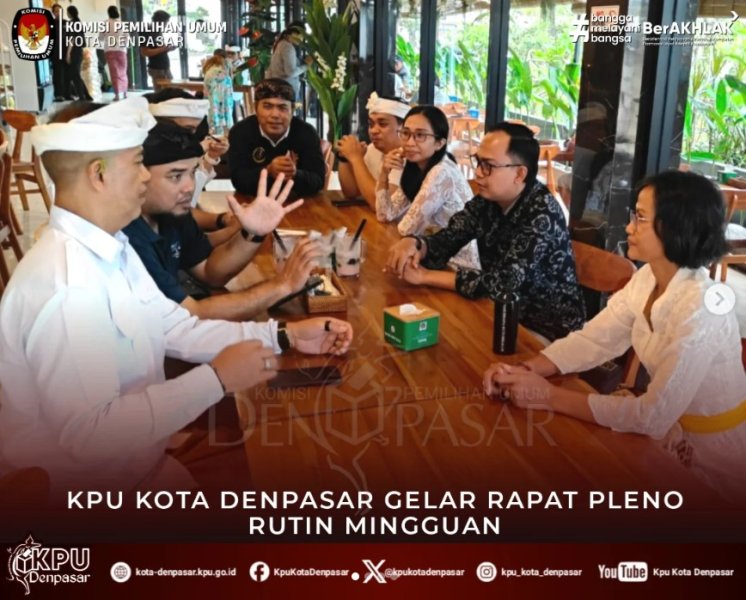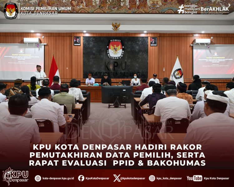 #temanpemilih & #wargakotadenpasar Komisi Pemilihan Umum (KPU) Kota Denpasar menghadiri kegiatan Rapat Koordinasi Pemutakhiran Data Pemilih serta Rapat Evaluasi PPID dan Bakohumas yang diselenggarakan oleh KPU Provinsi Bali. Kamis, (5/6/2025). Bertempat di ruang rapat kantor KPU Kabupaten Badung, Rakor dibuka dengan sambutan dari Ketua KPU Provinsi Bali dilanjutkan dengan Pemaparan Materi pembahasan penyelenggaraan Pemutakhiran Data Pemilih Berkelanjutan (PDPB) Provinsi Bali Semester I tahun 2025 oleh Ketua Divisi Perencanaan Data dan Informasi KPU Provinsi Bali. Kegiatan dilanjutkan dengan pembahasan Evaluasi Bakohumas dan PPID oleh Ketua Divisi Sosialisasi Pendidikan Pemilih Partisipasi Masyarakat dan SDM KPU Provinsi Bali. Pada kegiatan ini, KPU Kota Denpasar dihadiri oleh Ketua KPU Kota Denpasar, Dewa Ayu Sekar Anggaraeni, bersama Randy Gusas, selaku Ketua Divisi Sosdiklih Parmas dan SDM KPU Kota Denpasar, Sibro Mulissyi, selaku Ketua Divisi Perencanaan Data dan Informasi KPU Kota Denpasar, beserta Kepala Sub Bagian Perencanaan Data Informasi KPU Kota Denpasar, Putu Hanggasena Mahasidhi dan Operator SIDALIH KPU Kota Denpasar, I Nyoman Wirawan. (SM/Humas/KPU-DPS). "Ngulati Denpasar Shanti"