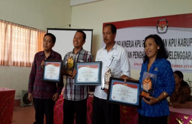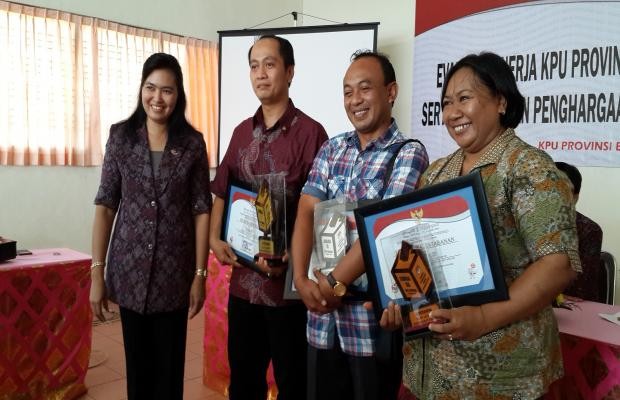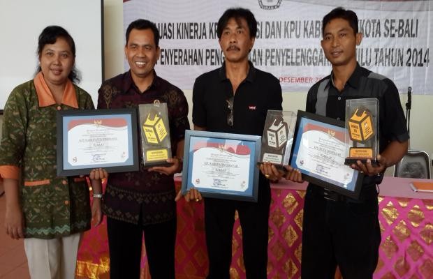 KPU Kota Denpasar mendapat penghargaan terbaik dalam 4 kategori dan 1 kategori mendapat terbaik ke tiga